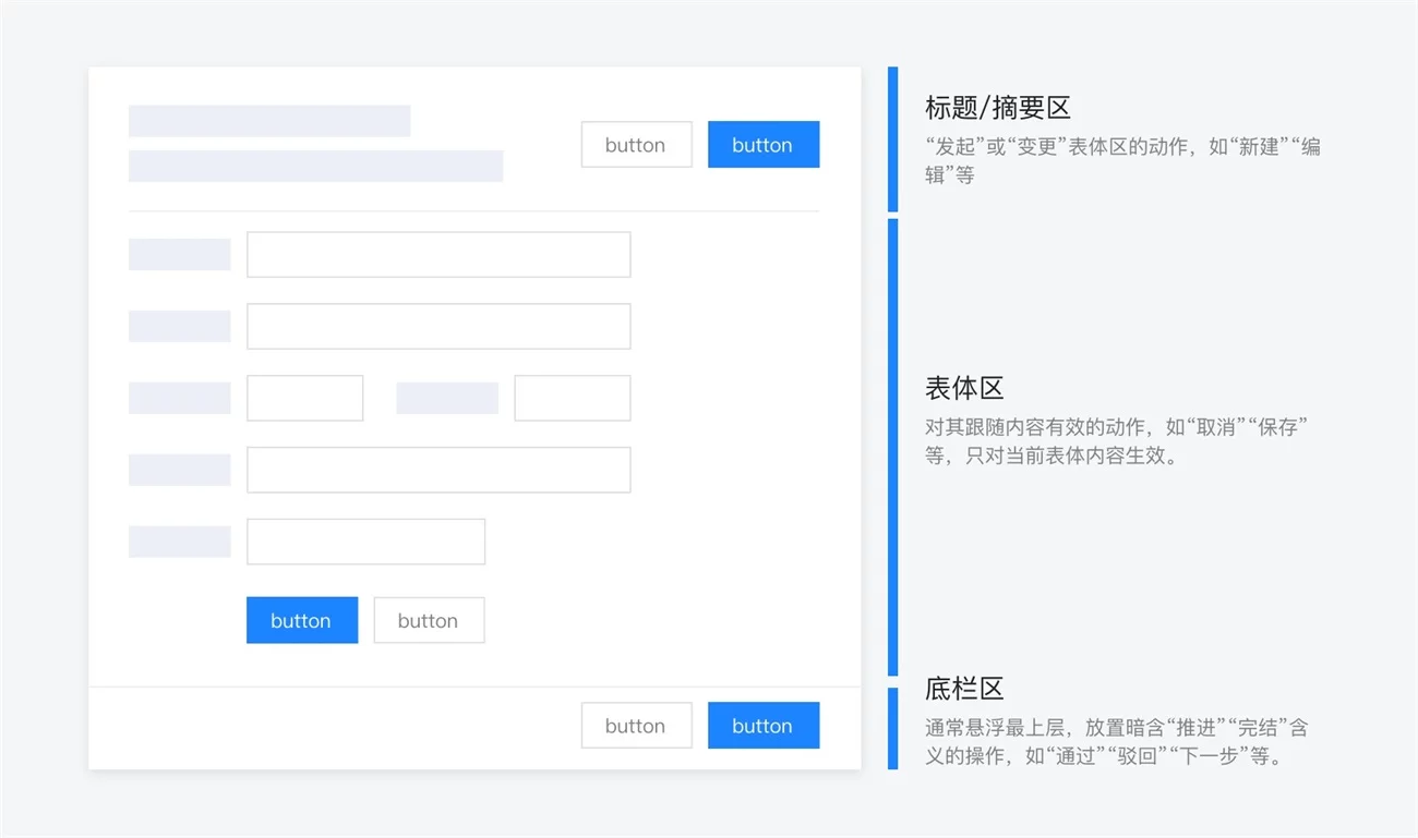 - 按钮操作区:一般将增删改查审的功能按钮放在这里。