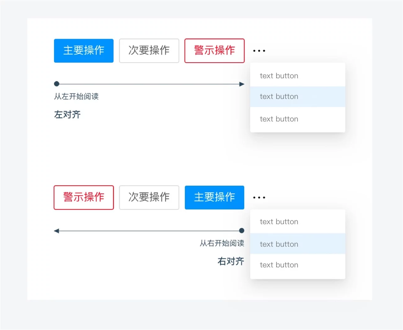 - 方向性含义:例如,具有返回意义的按钮,应该放在左侧,暗示其方向是回到之前,例如上一步。