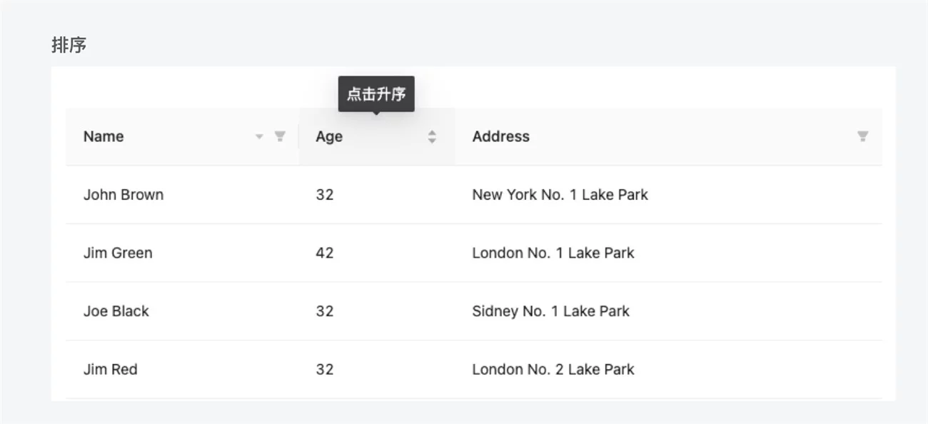 ②排序:即查看数据优先级排序,当排序项只有两种时,直接操作点击上下箭头按钮即可;当排序选项大于两种,则需要用下拉菜单进行排序。通常表格中默认有一个排序(如时间排序),点击对应排序按钮后会切换升序或降序。另外不同列的排序无法同时使用。
