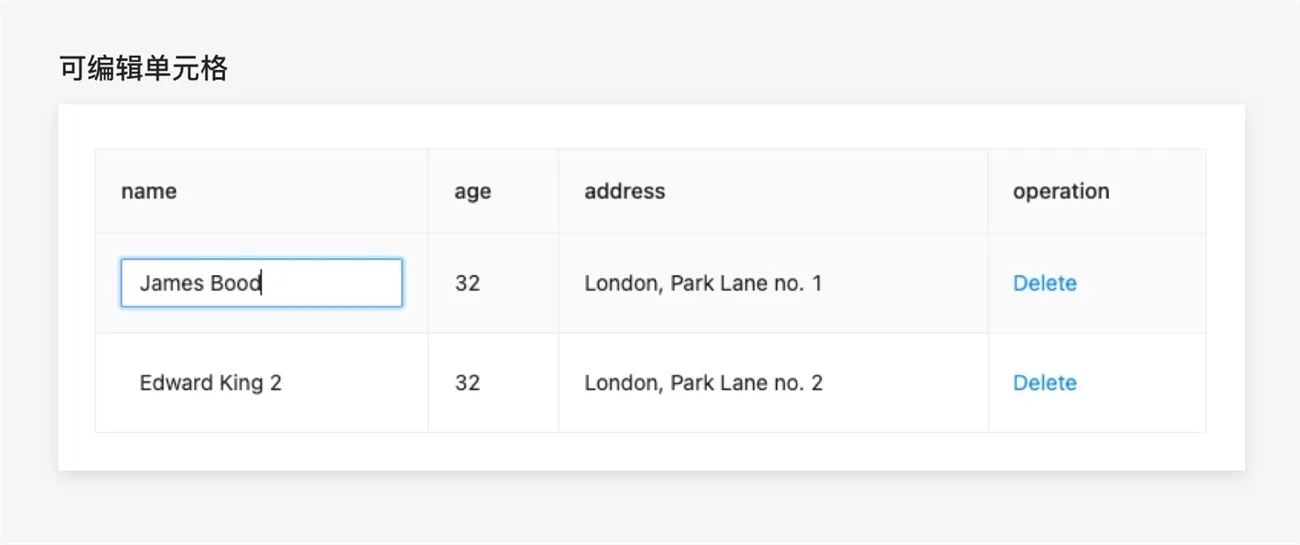 ①单数据编辑指在单元格内直接进行编辑,也可以是弹框编辑,输入光标消失后或点击确定使已录入信息覆盖生效。这种单元格通常用于可编辑数据不多的场景,无需跳转详情页进行复杂的编辑,直接表格内编辑即可。