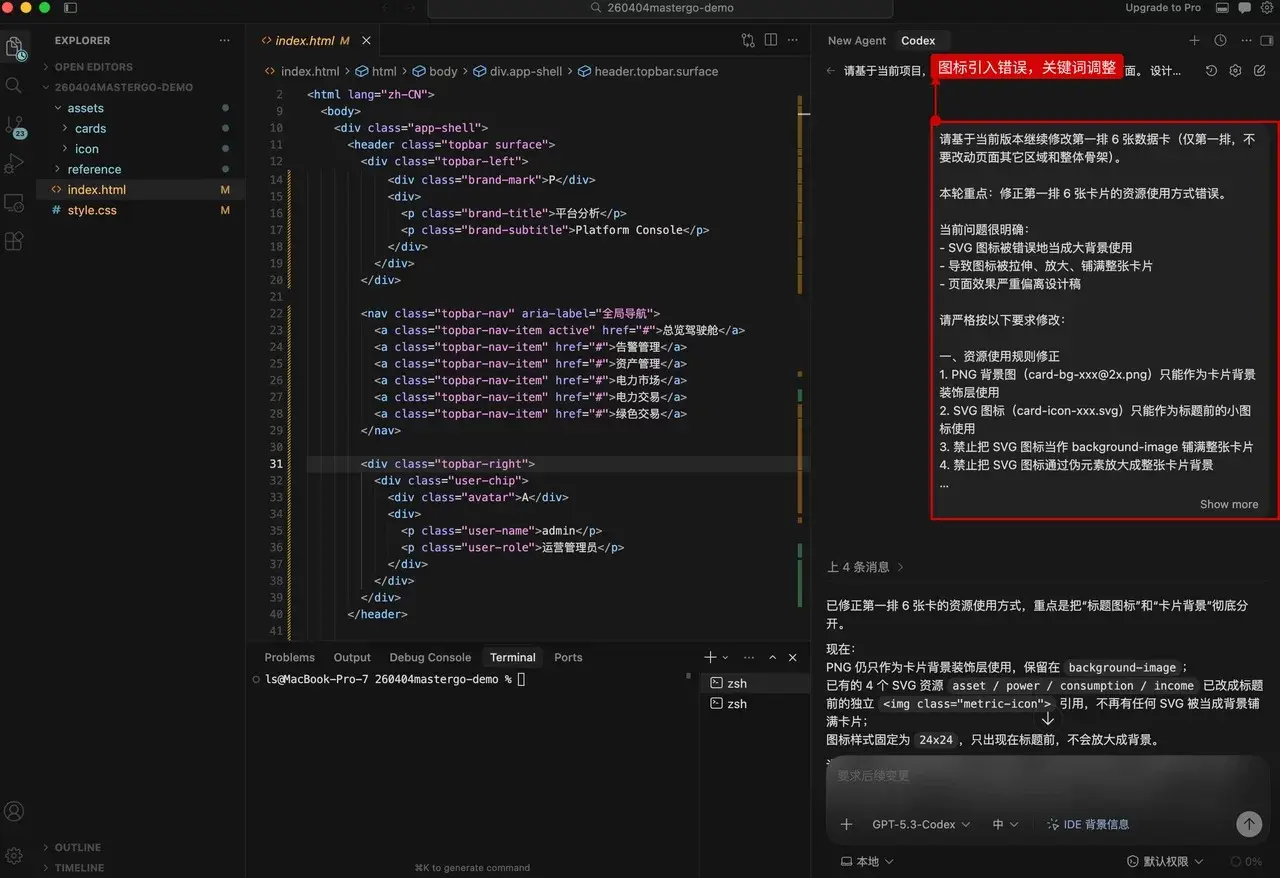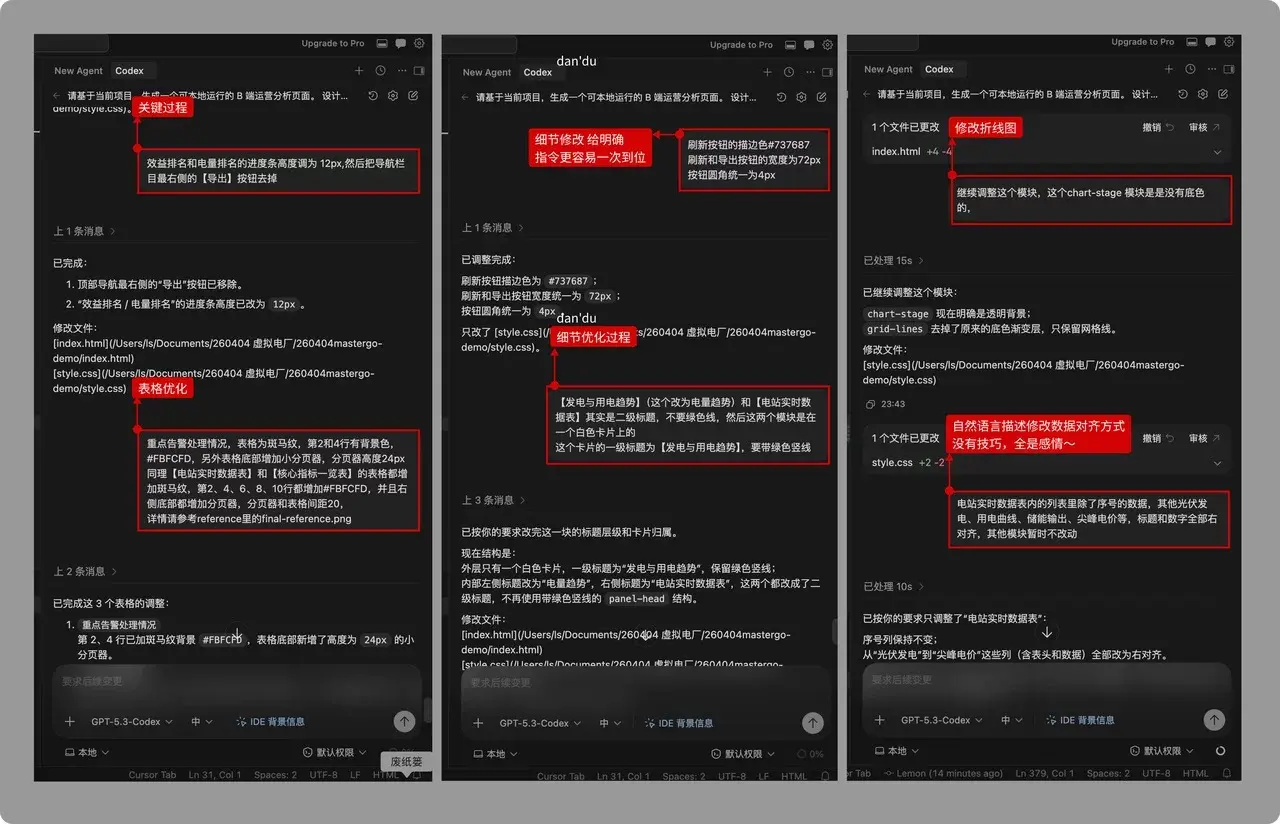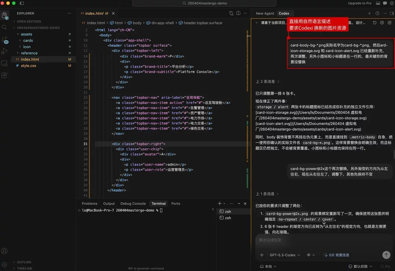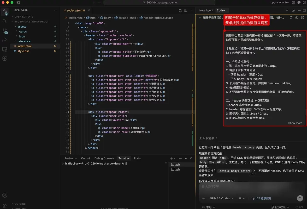 输入指令,要求 Codex 进行调整
