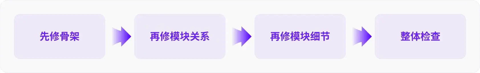 顺序必须是:先修骨架 -> 再修模块关系 ->再修模块细节 -> 最后整体检查