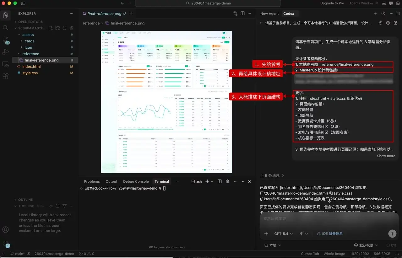 给它更完整的设计上下文,告诉它:这才是真正的参考来源,具体的间距、色值、字号都要以设计稿为准。