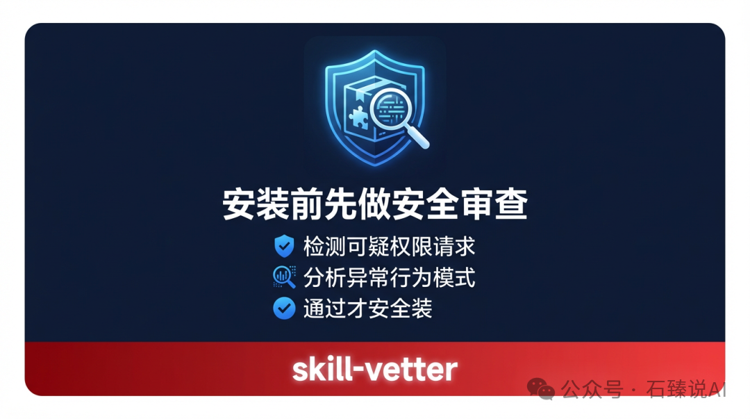 装陌生 SKILL 之前,先让它帮你过一遍——检查有没有可疑权限、异常行为、潜在安全风险。不知道来路的插件别直接装,先审再说。