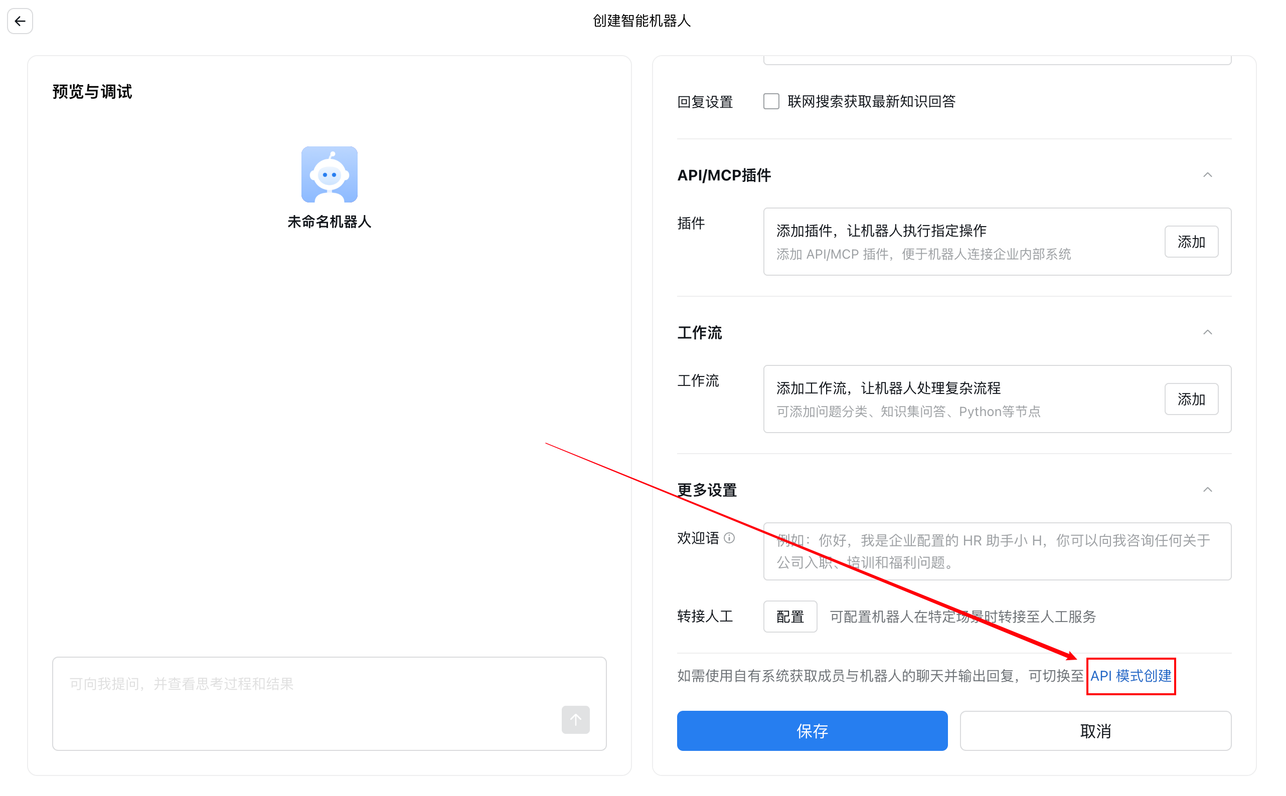 在企业微信中点击一键创建智能机器人即可完成配置