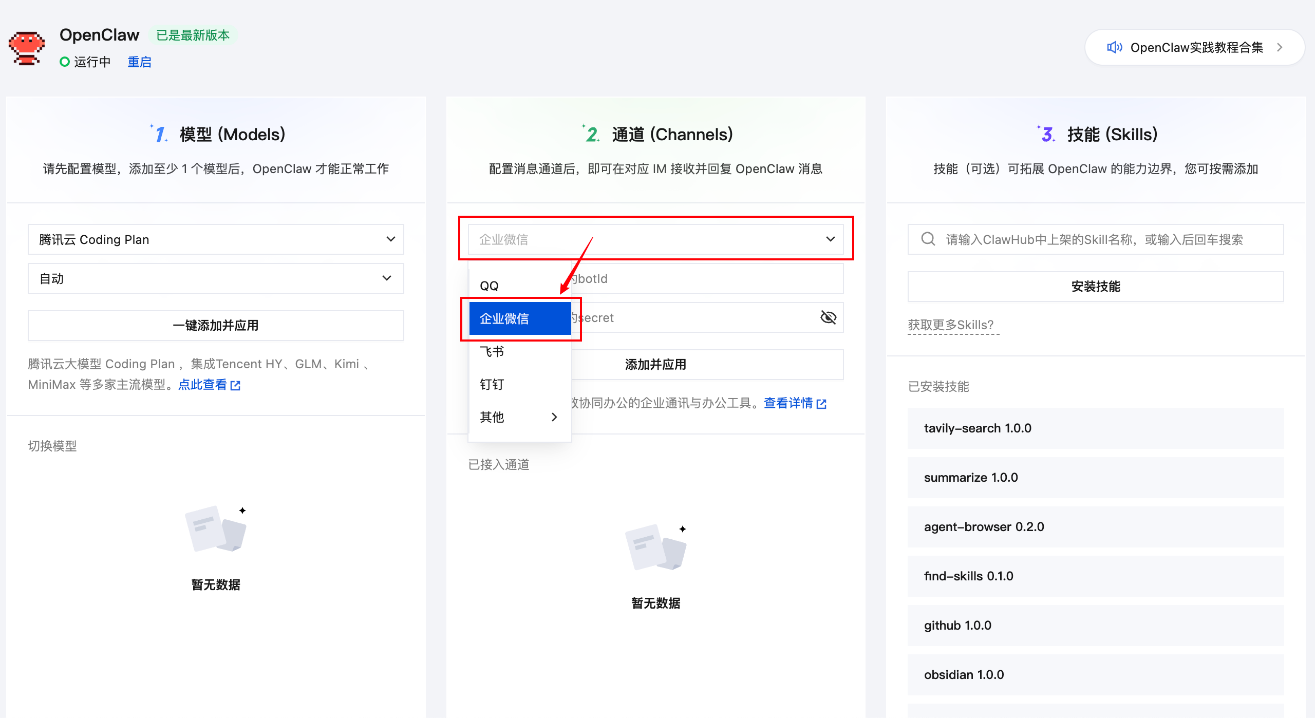 云上OpenClaw(Clawdbot)如何接入企业微信?腾讯云提供可视化配置面板,只需几步即可快速完成操作,极简接入!